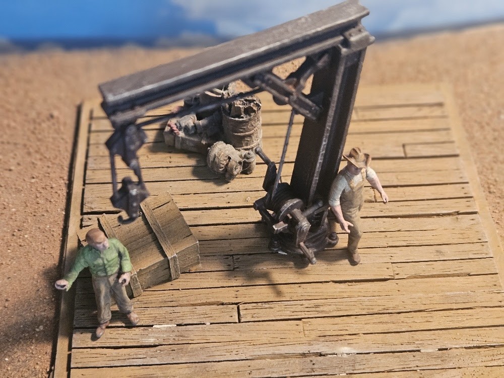 Creates a great little scene with a loading dock with a 3d printed crane and additional castings. You get the loading dock that is a one piece resin casting and measures 4 3/4" x 3 1/2" x 5/8" tall. Then you get everything to make a small diorama including 3D printed dock crane and 3D printed people. The other items are resin castings. The truck is not included and is just to show scale. All items come unpainted.
