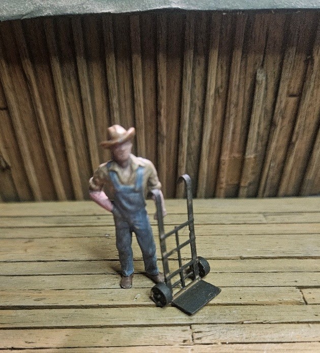 Fourth item is a great little detail part for any shop or loading dock. You get 2 of the Hand Trucks. The Hand Truck measure 1 1/8" tall and 5/8" wide. They are 3d printed and come unpainted.