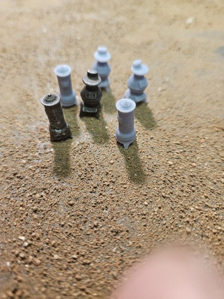 Third item is a set of 3D printed fuel cans and several different small cans. The set has 20 small detail containers and come unpainted. In the pictures you can see what the different fuel cans could look like painted.